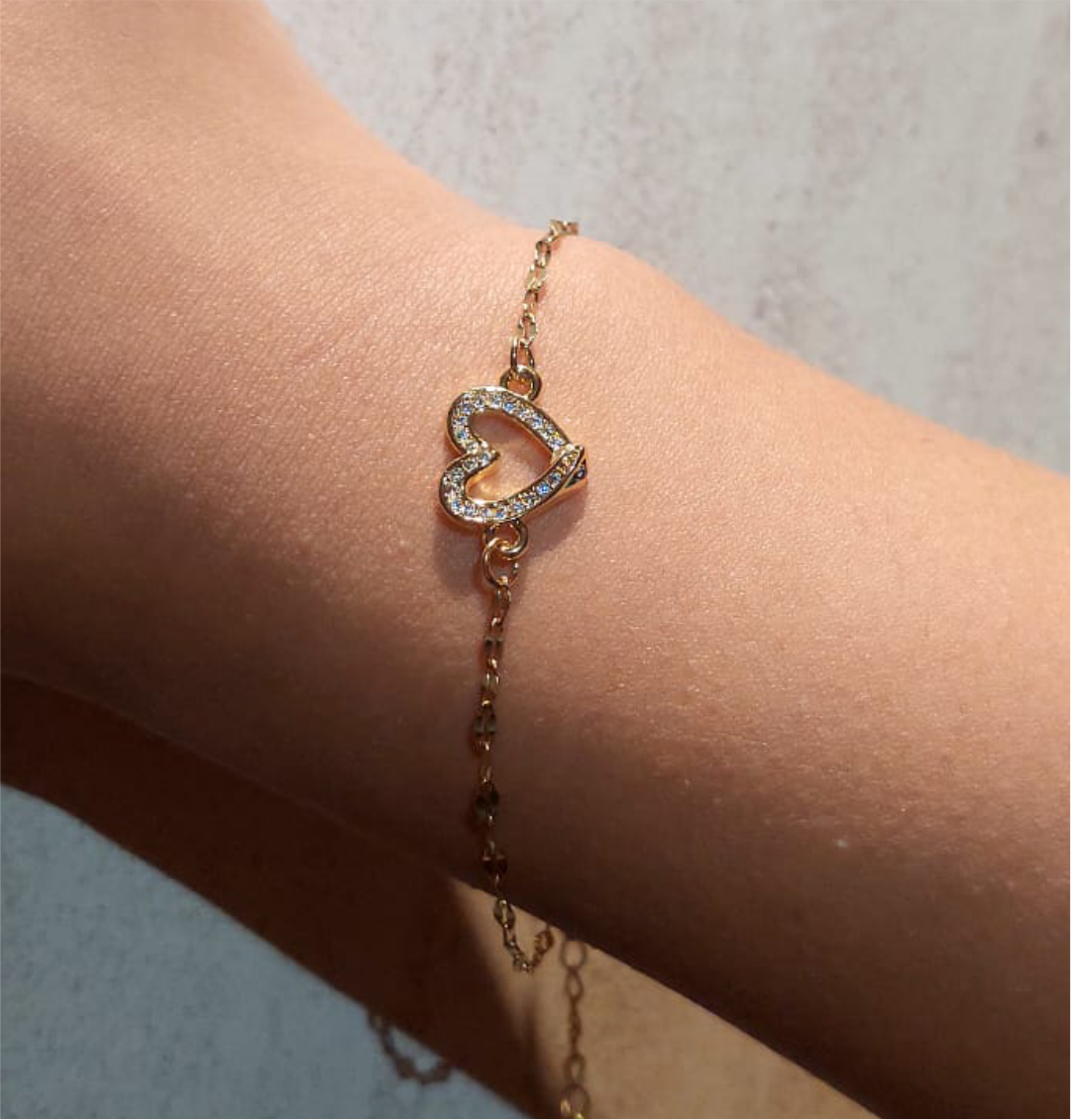 Pulseira Coração Vazado Cravejado com Zircônia – Aço Dourado