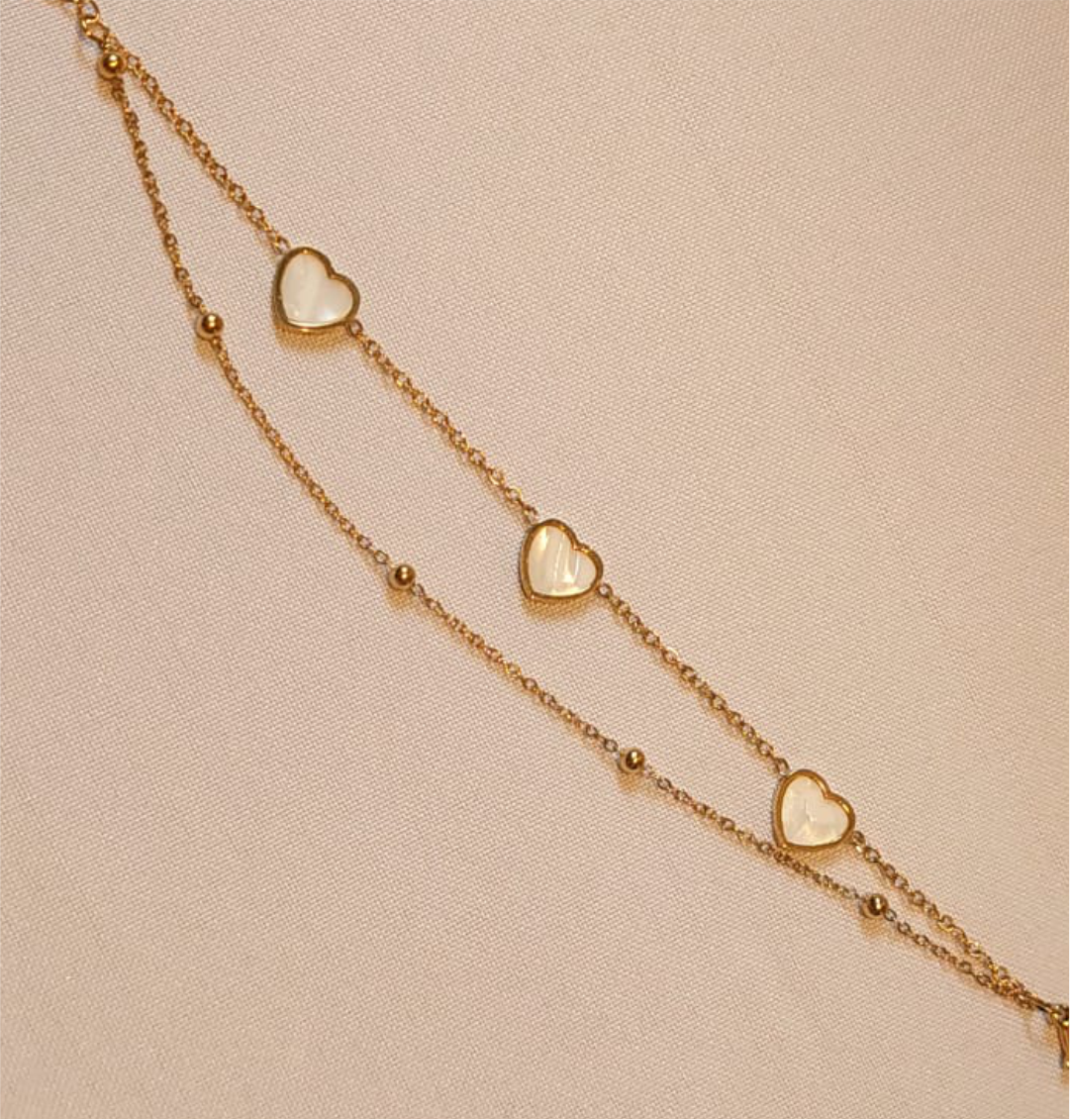 Pulseira Dupla Coração Perolado – Aço Dourado