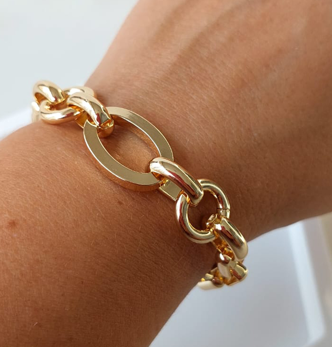 Pulsiera Banho Ouro 18K elos ovais quantidade
